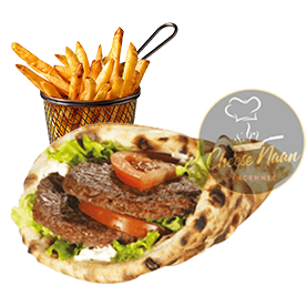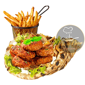 Kefta, sauces, crudités. Servi avec frites +1 € pour une boisson 33cl au choix.