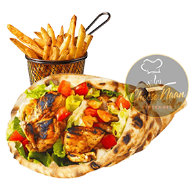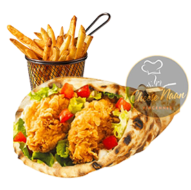 Chicken tandoori, sauces, crudités. Servi avec frites +1 € pour une boisson 33cl au choix.
