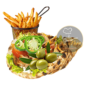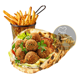 Falafel, cheddar, sauces, crudités. Servi avec frites +1 € pour une boisson 33cl au choix.